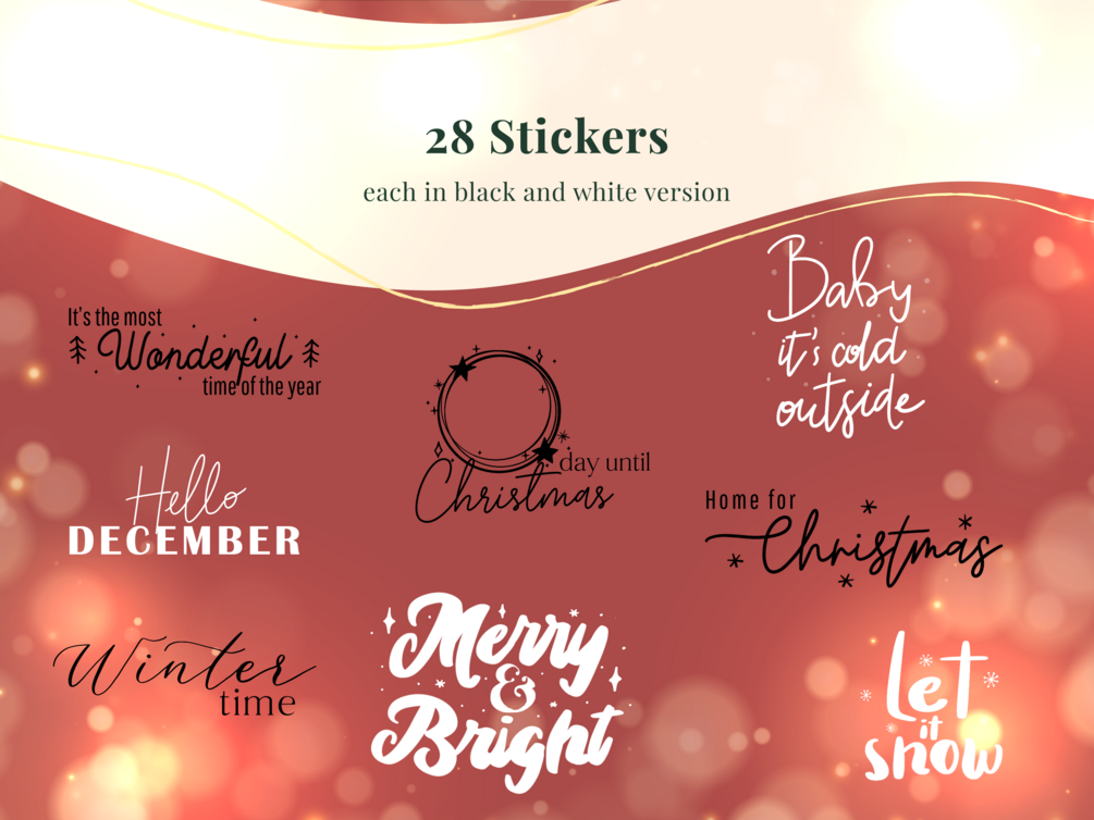 • Stylish Christmas and winter-themed phrases with small accents (like stars, snowflakes, and ornaments)
