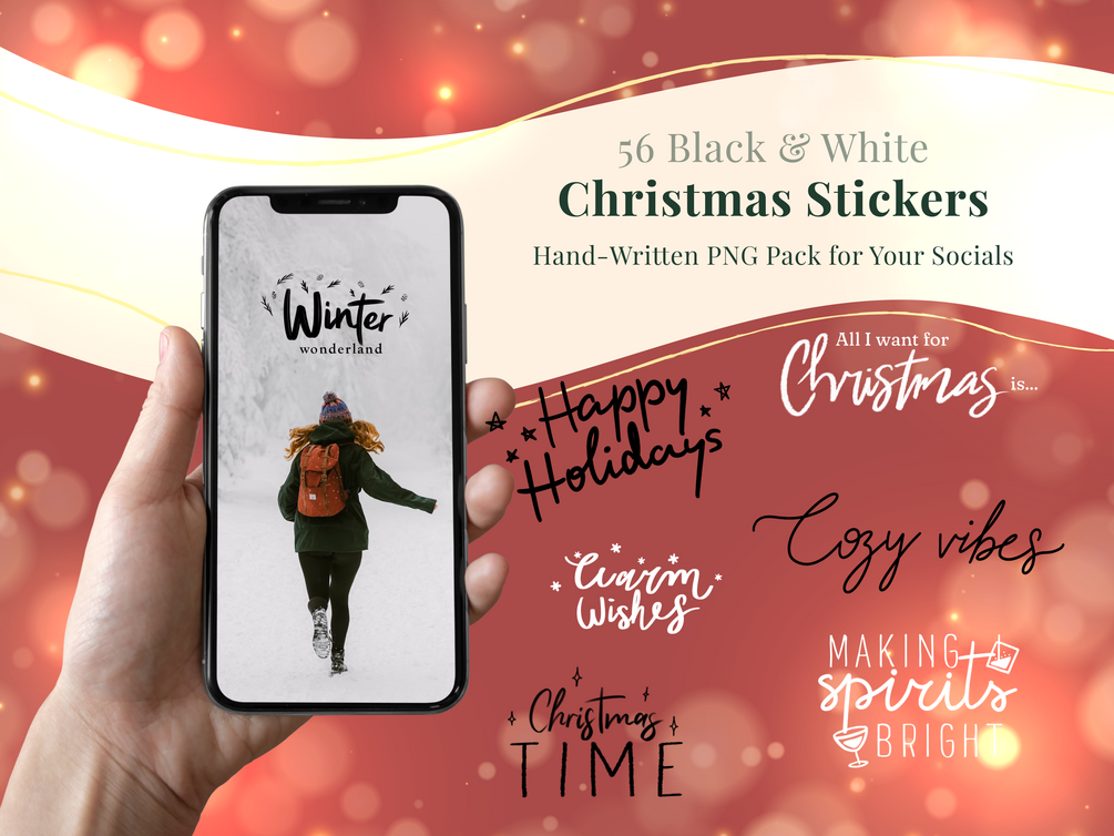 Add a personal touch to your holiday social media stories with these unique, hand-written Christmas-themed PNG stickers! Perfect for small business owners and content creators, these text-based stickers feature festive phrases with small decorative elements to make your holiday content stand out.